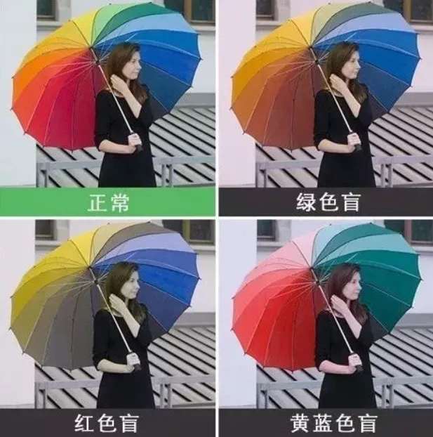 ***常見的色盲是紅綠色盲, 但色盲並非隻有這一種,還有紅色盲、綠色盲、 藍黃色盲、全色盲等。